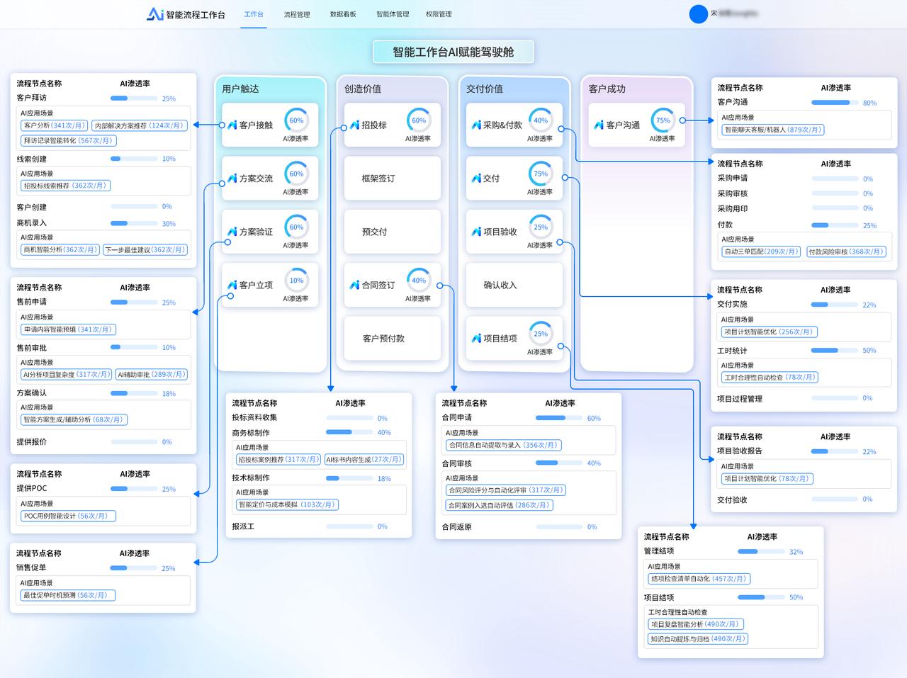 ? 將業(yè)務(wù)流程以作戰(zhàn)地圖的形式進行可視化呈現(xiàn),清晰展示流程的各個環(huán)節(jié)、節(jié)點之間的關(guān)系以及當前流程所處階段